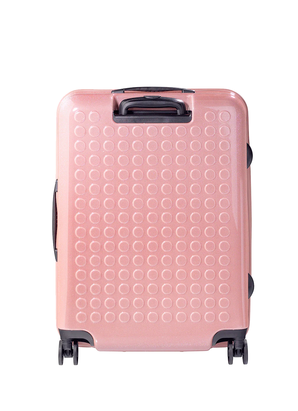 ”Dot-Drops Chapter 3” kufferten er med til at skabe en fantastisk udstråling af glitter, glæde og holdbarhed. Kuffertens glitrende detaljer fuldender et unikt look. Men hos os er det ikke kun det ydre, der betyder noget. Dot-Drops kufferterne holder også til lidt af hvert, og ikke mindst har kufferterne fire fantastiske dobbelt-hjul samt en god indretning med lukkede lommer og stropper i hver side. Alle Dot-Drops kufferter findes i forskellige farver og størrelser. Kufferten på billedet er en typisk mellemstørrelses kuffert til ca. 7-12 dage.